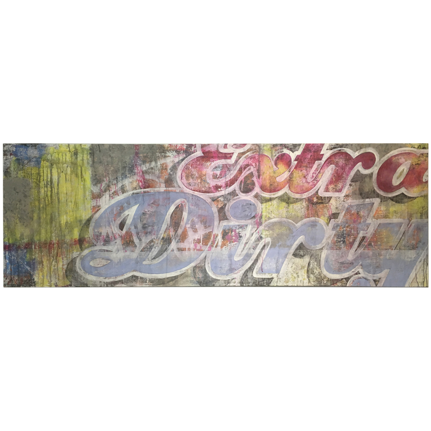 This seminal piece was made from entirely reclaimed materials that had been fly tipped outside his studio in South East London during the pandemic lockdowns. It marks the start of Hodway formally incorporating salvaged materials into his methodology. With the municipal waste disposal facilities closed and inaccessible, local tradesmen had nowhere to dispose of their building waste so dumped it wherever they could. Initially appalled, Hodway set himself the challenge to repurpose as much of these polluting eyesores as he could, with the goal of diverting them from landfill and transforming the unwanted into poignant and desirable pieces. Even the canvas was discarded by a neighbouring resident as they sought to reinvigorate the living quarters they were confined to. It was initially a mass produced portrait format painting, depicting a female flamenco dancer in a red dress. The kind one might purchase from a home furnishing, or department store. The paints Hodway has used are primarily trade decorating emulsions, with only the red being artist’s acrylic. Even this was salvaged from a neighbouring artist’s bin before being re-emulsified by Hodway to become usable once more.