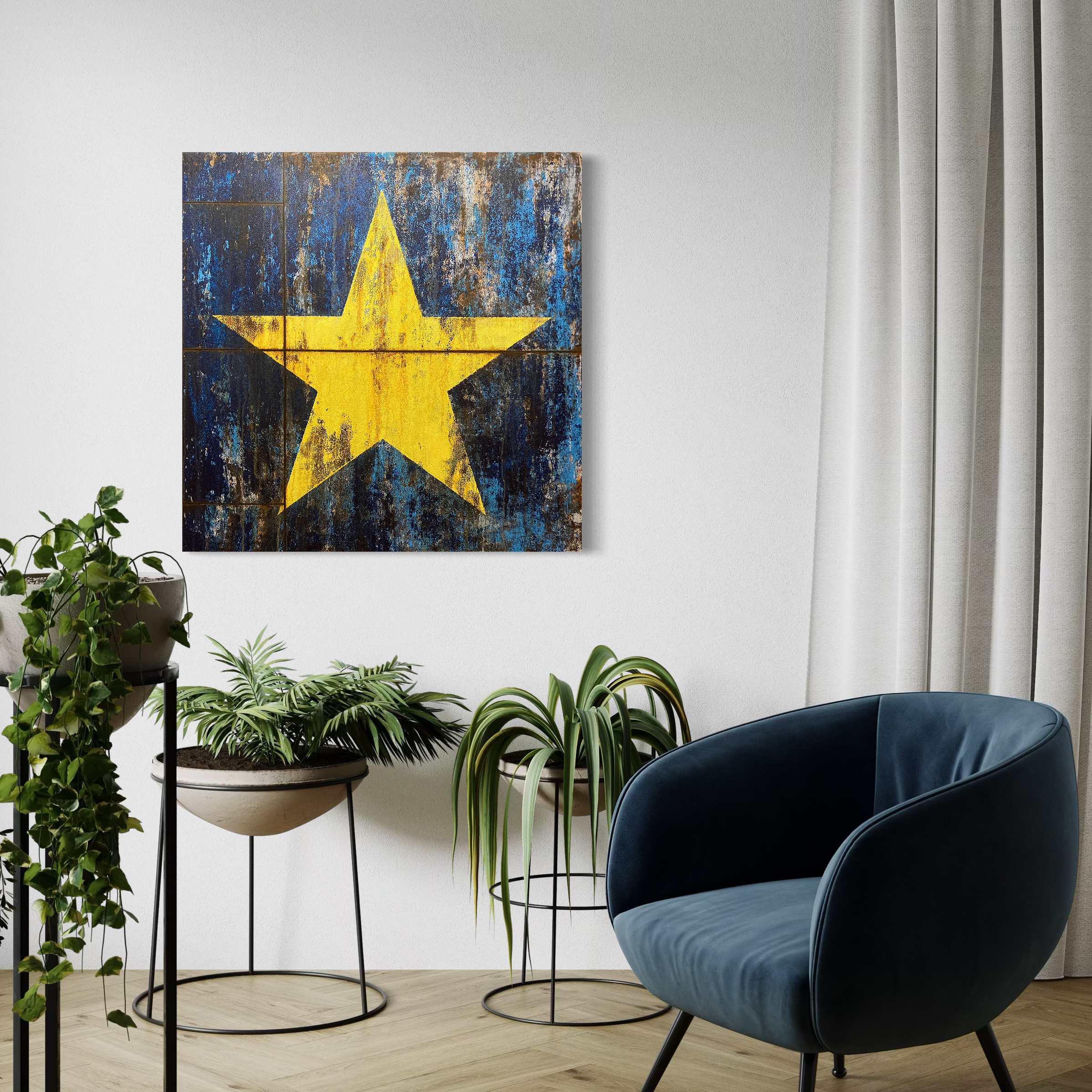 In an effort to minimise the negative environmental impact of art production, this piece is composed almost entirely of paint that has been salvaged from post-consumer sources, predominantly municipal waste disposal facilities. In other words, it is made from paint that has been thrown away. By diverting these perfectly viable paints from landfill, their future is transformed from harmful to harmonious, and reduces production and consumption of virgin materials.