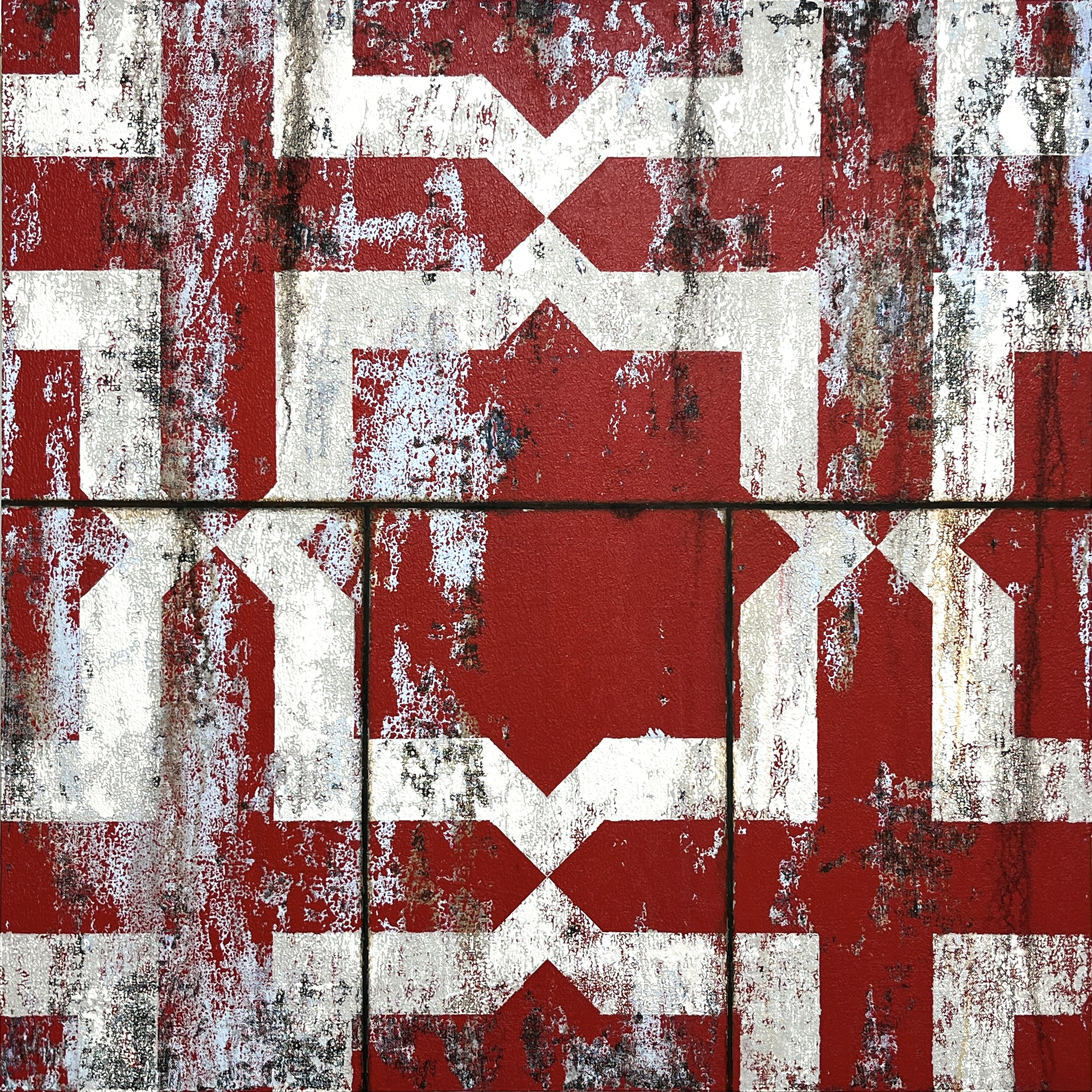 In an effort to minimise the negative environmental impact of art production, this piece is almost composed entirely of paint that has been salvaged from post-consumer sources, predominantly municipal waste disposal facilities. In other words, it is made from paint that has been thrown away. By diverting these perfectly viable paints from landfill, their future is transformed from harmful to harmonious, and reduces production and consumption of virgin materials.
