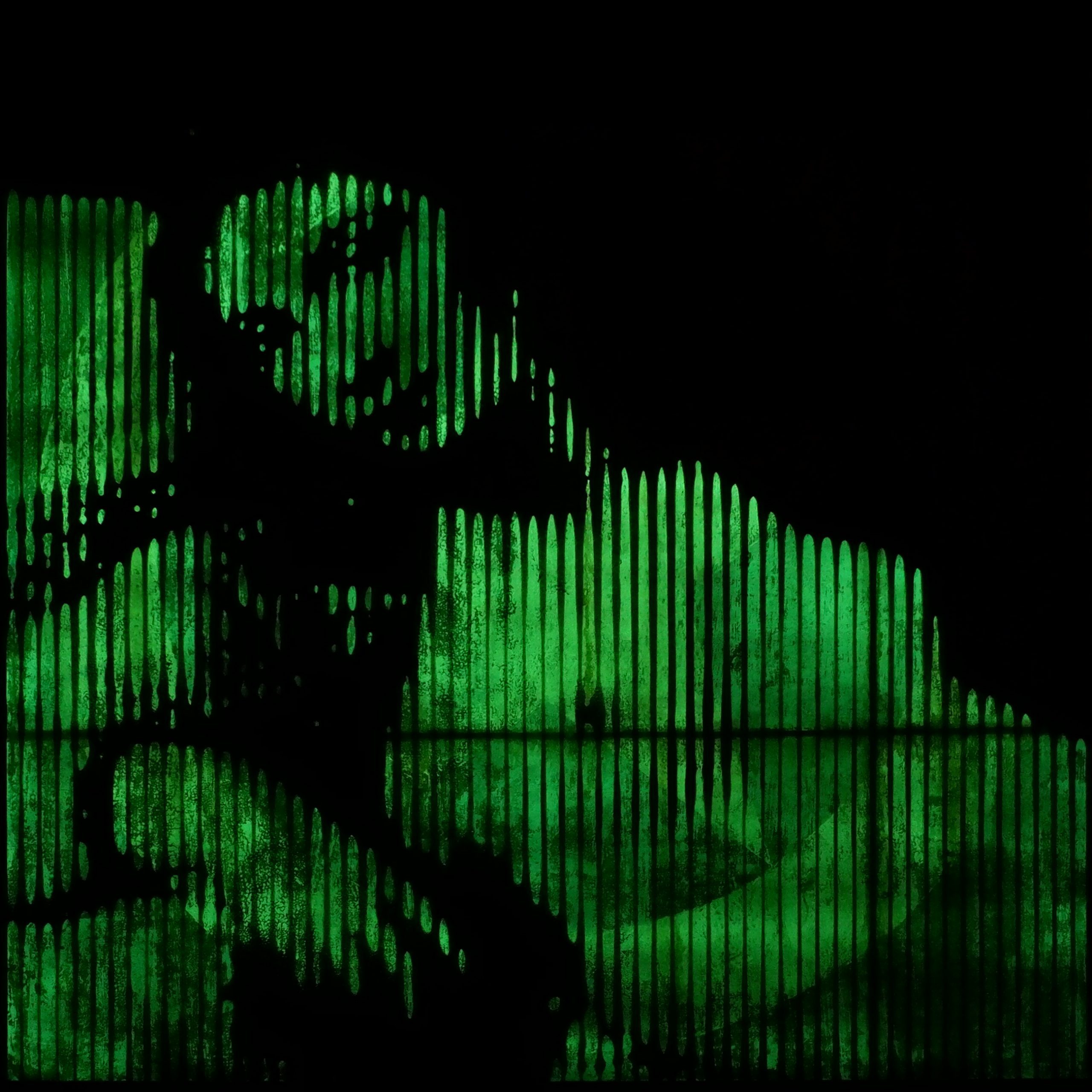 | Media | Phosphorescent paint, salvaged paint, on upcycled cotton, stretched over cradled FSC certified timber panel. |